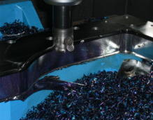 取り代の多いコーナーに、ヘリカル加工でΦ120の穴を開ける。